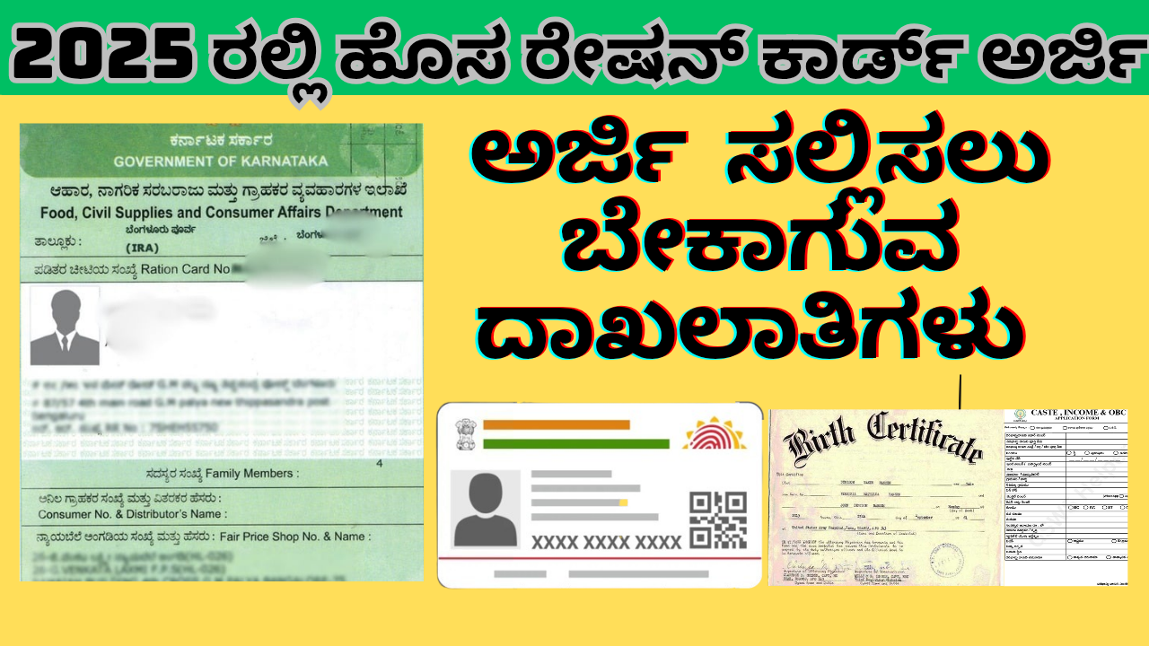 ಹೊಸ ಪಡಿತರ ಚೀಟಿಗೆ ಅರ್ಜಿ ಸಲ್ಲಿಸಲು ಅಗತ್ಯವಿರುವ ದಾಖಲೆಗಳ 2025